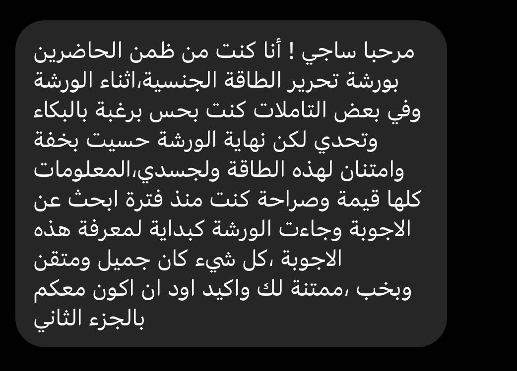 هذه الورشة ليست مخصصة لشفاء الصدمات الجنسية مثل التحرش او الاعتداء الجنسي. يجب عليك ان تحجز جلسة شفاء خاصة او تذهب لمتخصص لمساعدتك في معالجة تلك الصدمات